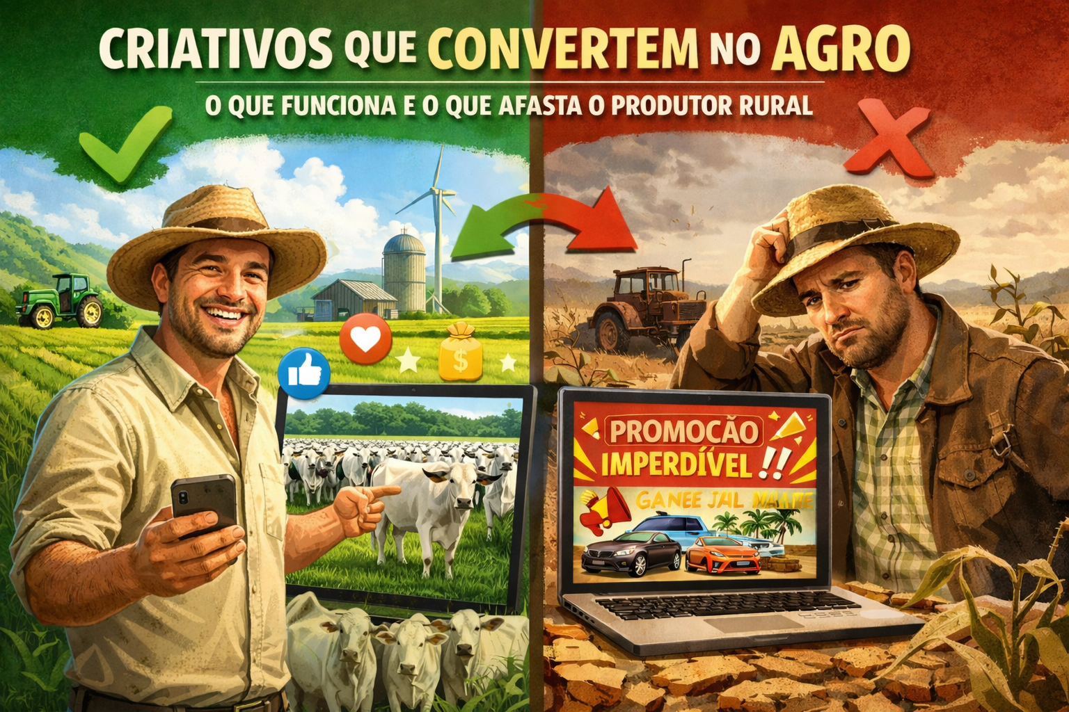 Já vi empresas do agronegócio investirem R$ 5.000 por mês em Meta Ads e terem resultados pífios — não por causa do orçamento, não por causa da segmentação, mas por causa do criativo. O anúncio simplesmente não conversava com o produtor rural.